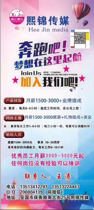 熙錦傳媒是產(chǎn)品銷(xiāo)售以及網(wǎng)絡(luò)直播實(shí)力公司,用實(shí)力打造熱愛(ài)直播群眾們的價(jià)值神態(tài),組建先鋒團(tuán)隊(duì),專(zhuān)業(yè)輔助一些熱愛(ài)直播的年輕人,提供一種新穎的直播方式,商業(yè)對(duì)接,個(gè)人包裝等,直接添加好友