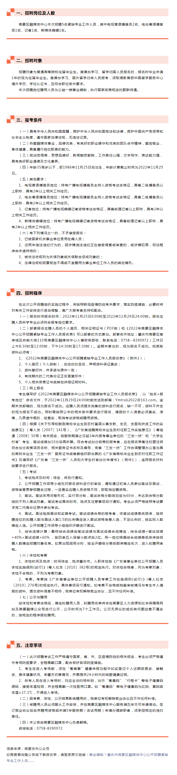 2022年肇慶市高要區(qū)融媒體中心公開(kāi)招聘緊缺專(zhuān)業(yè)工作人員公告