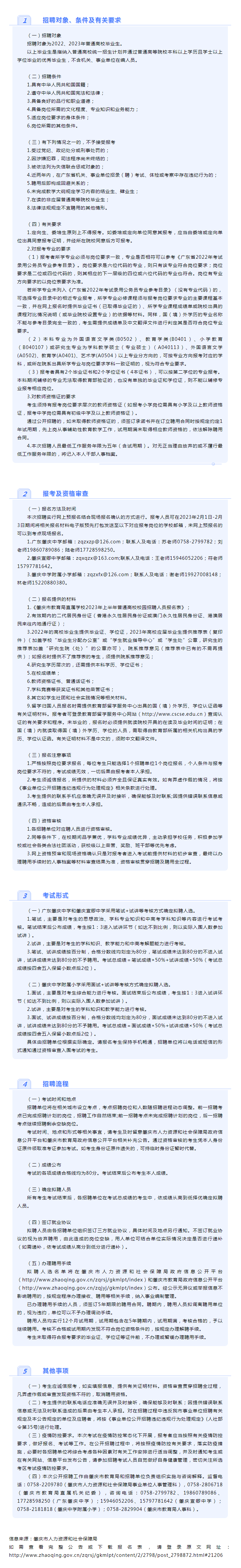 肇慶市教育局直屬學校2023年上半年公開招聘中小學教師公告