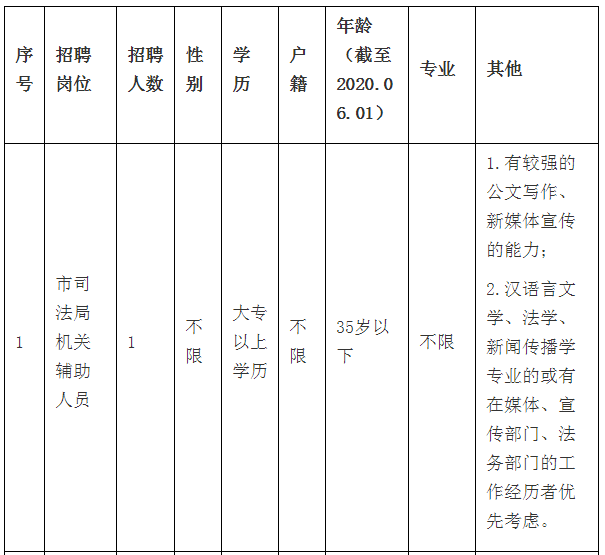 1、市司法局機關(guān)輔助人員1名。